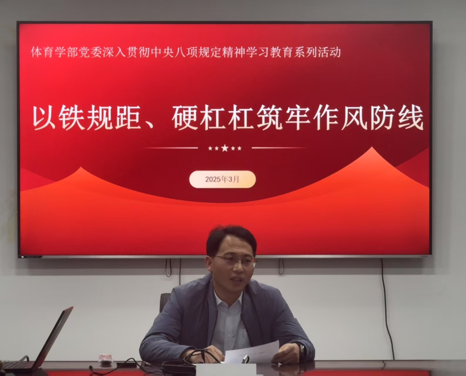 党委书记许怀祥传达了学校关于开展深入贯彻中央八项规定精神学习教育的相关文件和会议精神,强调了此次学习教育的重要意义。他表示,中央八项规定是长期有效的铁规矩、硬杠杠,关乎党的形象、人心向背和事业发展。开展学习教育是推动全面从严治党向纵深发展的重要举措,也是提升学部党员干部队伍作风建设水平的迫切需要。全体党员干部要提高政治站位,深刻认识学习教育的重大意义,切实把思想和行动统一到党中央决策部署上来。