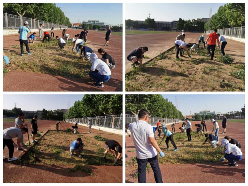 近期,受今年雨水偏多影响,我院南操场等室外场地部分区域杂草丛生,需要处理。经学院党政联席会研究,学院班子成员带头,我院教师开展义务拔草活动。