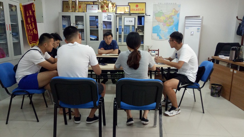 在辅导员办公室召开2018年助学金评审会。团委副书记梁贺涵老师主持会议并讲话,学院助学金评审领导小组全体成员出席会议。